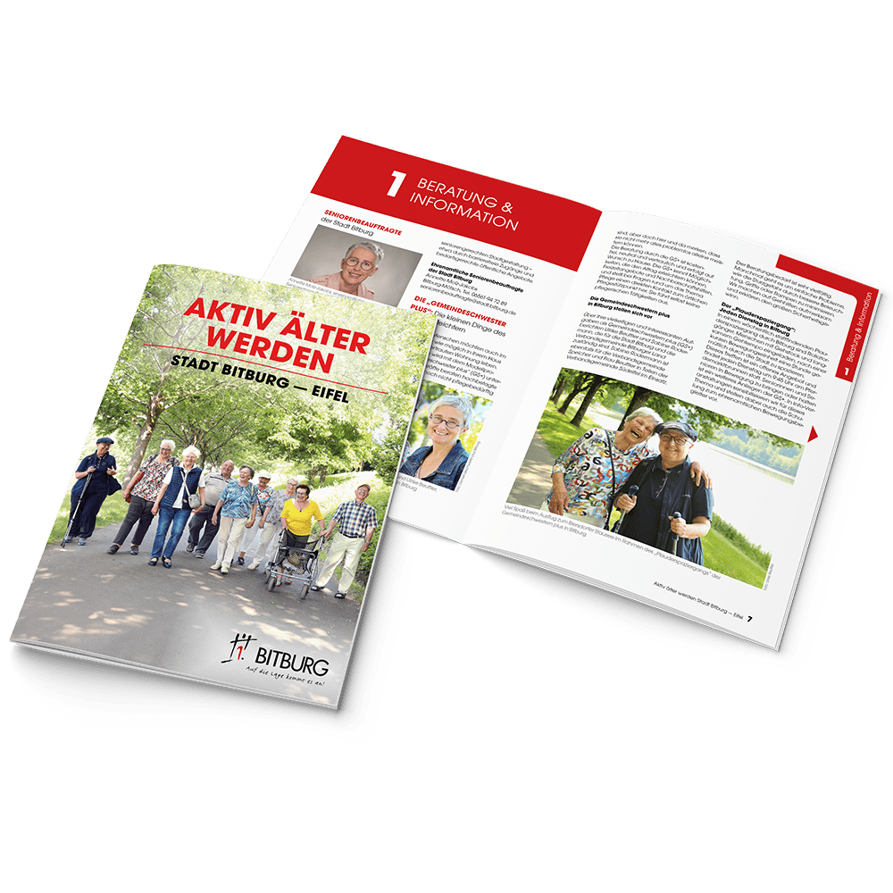Wie finden ältere Menschen schnell und verständlich die richtigen Angebote zu Beratung, Freizeit, Gesundheit oder Engagement? Für die Stadt Bitburg war klar: Es braucht eine zentrale Broschüre, die nicht nur informiert, sondern auch zum Lesen einlädt.
